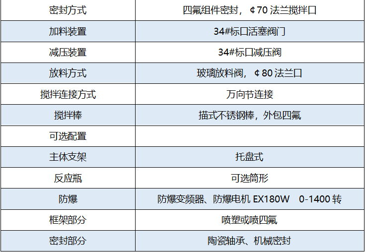 • 下放料部分為玻璃法蘭口配套特殊設(shè)計(jì)聚四氟閥門,容器內(nèi)無(wú)死角,可拆卸便于固體物料出料。