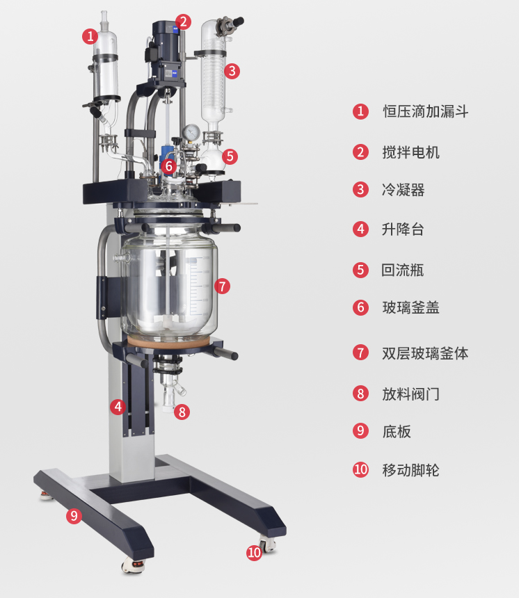 •反應釜釜體采用高硼硅玻璃(GG-17材質),有優(yōu)良的物理化學性能,瓶體透明、可見反應液料。